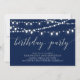 Celebre seu dia especial com este modelo na moda moderno de convites de aniversário. Este design apresenta belas luzes de cordas com um tema de cor prata e marinho. ( aniversário de 21 anos, aniversário de 30 anos, aniversário de 40 anos, 60 anos, 70 aniversário ou qualquer outra festa de aniversário. )