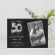 Um rico, preto e prateado, um convite de fotos de 50 anos que você pode personalizar e enviar para sua cesta de festa de aniversário 50. Substitua a foto da amostra por uma sua. As cores de texto azul-prateado e de gelo podem ser alteradas, assim como o tamanho da fonte e da fonte, usando o menu de edição. A parte traseira da placa é mantida em prata metálica, combinando a cor da fonte na frente.