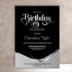 Este convite de aniversário preto e prata moderno irradia elegância e sofisticação simples. Sua design apresenta um esquema de cor preto e prateado, separado por uma onda fluida e uma fita cor-de-rosa na moda que flui de um lado para o outro. A área de texto personalizável permite que você inclua facilmente todos os detalhes necessários para sua celebração especial de aniversário, incluindo as informações de data, hora, local e RSVP. Quer você esteja planejando uma reunião acolhedora ou um grande caso, este convite contemporâneo certamente impressionará seus convidados.