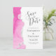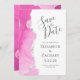 Este elegante moderno salve a data card apresenta uma aquarela cor-de-rosa, cortada com folha de prata falsa. O texto personalizável é uma cinza de carvão em um fundo branco. O verso apresenta um design de agate cor-de-rosa e prateado correspondente.