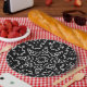 O padrão Saytoons Modern Mudcloth é um design de arte digitalmente criado com inspiração africana em preto gráfico e cinza claro, agora adicionado a um conjunto de pratos de papel para dar um toque cultural afrocentrado único ao seu próximo evento.