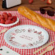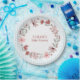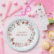This editable paper plate coordinates with the Wildflower Bow Frame on Gingham Baby Shower invitation and features soft brushed flowers on a watercolor gingham background. The text can be edited for any message.