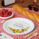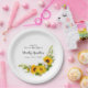 Girassol amarelo elegante e elegante, pénia e pratos de papel floral de margarida branca. Três linhas de texto permitem personalizar sua decoração de mesa.