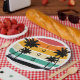 .: 1995 .: Retro Stripe Sunset com silhuetas de palmeiras .: Coordenando designs disponíveis .: Outros anos disponíveis