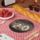 Prato De Papel 20 marquee de aniversário na parede de tijolos