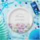 Perfect table decor for a September birthday party. Aster is the birth flower for that month. It forms a pretty watercolor bottom border on this floral personalized paper plate. The birthday guest of honor's name, age and birthdate are placed above it using elegant calligraphy and typography. All text is editable.