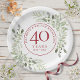 Apresentando delicadas folhas moles de cor d'água, esta design de 40 anos de casamento botânico pode ser personalizada com suas informações especiais de aniversário em elegante texto vermelho rubi. Projetado por Thisnotme©