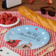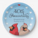 This personalized paper plate makes a cheery decoration for a couple celebrating a 40 year wedding anniversary! A pair of cardinal birds pops up below elegant script text that reads, “40th Anniversary” and two names and a wedding date which can be customized. Hearts form a circular border around the design.