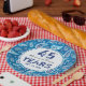 Comemore o aniversário de casamento da safira de seu casal favorito com este acessório personalizado! Um teste padrão retro de paisley do divertimento em máscaras elegantes do azul serve como uma beira bonito. Uma data do casamento, dois nomes, e as palavras, "45 anos" são caracterizados perto do centro e podem ser personalizados. Faz uma torção moderna em um teste padrão dos anos 60.