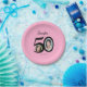 Prato De Papel 50º Nome da foto de aniversário personalizado rosa