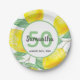 Limões suculentos, deliciosos e com coloração aquosa, em amarelo, verde e um pano de fundo branco para a 50ª festa de aniversário. Um quadro branco e verde com modelos para nome, idade e data. O nome é escrito em um script de estilo manuscrito, letras negras. O número 50 está escrito em verde.