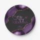 Sirva seu convidado com esta placa de papel moderna e na moda. Ele apresenta uma profunda borda de fatia geodórica de átomos roxos com texturas de aquarelas e sotaques dourados falsos em uma cinza escura de carvão. Os textos são uma combinação de cores claras e roxas brilhantes e podem ser personalizados ou alterados usando o menu de edição.