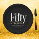 50 & Placas de papel personalizado preto moderno e elegante de aniversário. Personalizar com o nome e a data de festa de aniversário.Contacte-me para mais personalização antes de fazer o seu pedido. Obrigados para visitar nossa loja. Copyright Soar em Style Design LLC.
