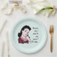 Conjunto de oito placas de papel da casa da moeda de 9" com uma imagem de uma mulher 50 morena com o dedo no queixo como se estivesse preparada para expressar um pensamento. Texto personalizável. Ver frasco, caneca, vidro e portas copos. Veja a coleção inteira de Placas de 50 da Noventa na COMIDA/BEV | Seção pratos.