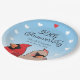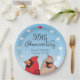This personalized paper plate makes a cheery decoration for a couple celebrating a 55 year wedding anniversary! A pair of cardinal birds pops up below elegant script text that reads, “55th Anniversary” and two names and a wedding date which can be customized. Hearts form a circular border around the design.