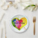 5 pratos de festa de aniversário. Chapas personalizadas. Placas de festa de aniversário arco-íris. Placas de papel, pratos coloridos. Adicione o nome e a data do seu filho.