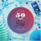 Uma design simples, minimalista, engraçada e moderna com cores que vão do azul ao vermelho. Para organizar o 50º aniversário de um dos seus entes queridos. Este modelo é totalmente personalizável.