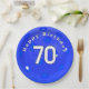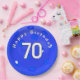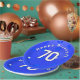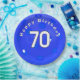 Fechamento de uma bola de piclebol azul neon para um 70. Todo o texto pode ser alterado ou excluído.