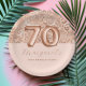 A metade superior desta design cinzenta, cinzenta, apresenta um padrão de manchas-leopardo douradas rosa cintilantes num fundo rosado, com "70" em grandes números de balões rosa de ouro. Adicione o nome do convidado de honra em um elegante script de escrita manual rosa escuro de em um fundo embaçado, com as palavras "70 festa de aniversário na fonte sans serif abaixo.