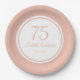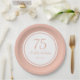 Placas de papel 75ª festa de aniversário, cor-de-rosa e branco, personalizadas com seu nome, idade (qualquer idade) e data da festa.