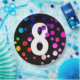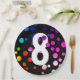 Padrão de ponto do arco-íris neon em fundo preto para a 8ª festa de aniversário. A idade pode ser editada. A cor de fundo preta pode ser alterada.