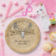 O Hunt está sobre design, por favor, encontre produtos na minha loja! Crânio de veado com faixa atrás dizendo "A CAÇA ACABOU". O plano de fundo é o design de papel vintage falso.