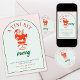This design features Christmas cocktail theme party "A Tini Bit Merry" with a martini glass and a Santa sitting on it.