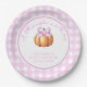 Prato De Papel Abóbora com arco rosa no chá de fraldas da gaiola