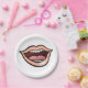 Uma boca grande aberta mostrando dentes. Este design parece realmente eficaz nestas placas de papel