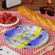 Prato De Papel Abstrato de Casamento Azul-Amarelo Azul