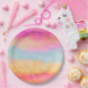 Prato De Papel Abstrato do Arco-Íris Amarelo Cor-de-rosa