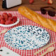 Prato De Papel Abstrato Terrazzo Mosaico Marinho e padrão azul cl