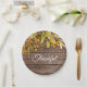 Estas placas de papel de Ação de Graças ou de Ação de Amizade são decoradas com folhas de aquarela em tons de queda e dizem "Obrigado" em tipografia de na moda num fundo de madeira de celeiro. Original Watercolor © Michele Davies.
