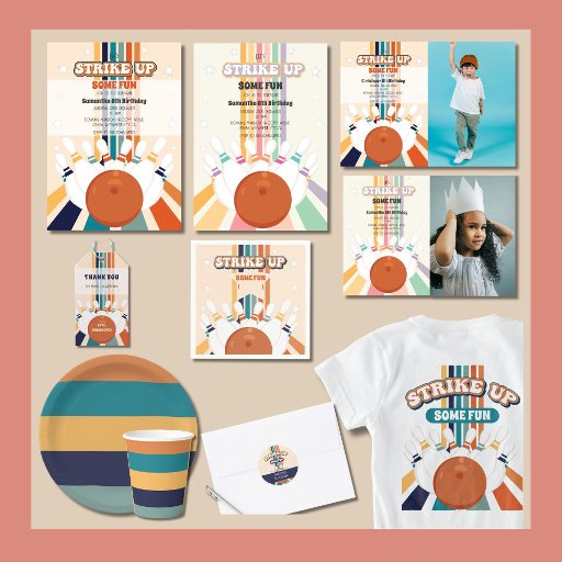 Celebre em estilo com estas placas coloridas e divertidas de festa de aniversário com tema de boliche! Apresentando um design lúdico com pinos de boliche, uma bola e listras retrorinspiradas, estas placas de papel são perfeitas para crianças ou adultos que adoram jogar boliche. Personalize facilmente com os detalhes do partido para tornar o seu evento inesquecível
