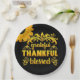Grata, grata, abençoada tipografia em amarelo de girassol em preto com girassol no canto.