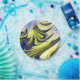 Um desenho abstrato originado de espirais azuis, amarelas e brancas que produzem água fluvial.