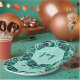 Estas placas de papel do feriado moderno dizem a "alegria" na tipografia verde, com um design verde da malaquite e uma folha de prova geométrica branca. Nós usamos a arte de LABFcreations.