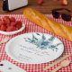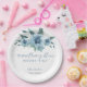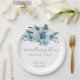"Algo Azul Antes de Fazer" Chuve de Noiva personalizado com pratos de papel com flores em aquarela e fonte de letra elegante.