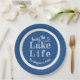 O branco-claro no design azul náutico é perfeito para festas caseiras e churrascos e batatas fritas no lago. Amar a vida do lago em um estilo casual com a alegria que vem de viver no lago. Personalize com seu nome de família ou nome de evento.