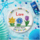 Flores bonito na margarida ouro amarela, azul-amarela, e tulipa roxa floridas na grama do jardim. A divertida e divertida arte folclórica. Amor Mãe Terra é escrita em tipografia vermelha e preta. Design de Arte Original por TamiraZDesign.