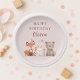 Prato De Papel Animais da Floresta Rosa de Aniversário