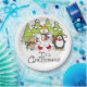 Um prato de design de Natal bonito, colorido, com um urso polar, pinguim e rato, todos com lenços e skates de gelo com árvores cobertas de neve e texto que diz É Natal!
