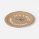 Bons animais empalhados, o Themed Paper Plate design apresenta um fundo brando para a frase, "É um menino!" em letras brancas. Também em letras brancas está o nome do bebê. O centro da design apresenta uma imagem de animais fofinhos bonitos, todos amontoados juntos, prontos para receber o bebê!