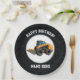 Feliz prato de aniversário para o fazendeiro ou condutor de skid. O garoto fazenda que ama equipamentos adorará ver sua refeição de aniversário nesses pratos. Faça um aniversário que eles nunca esquecerão.