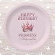 Personalize esta princesa princesa de papel, a adição perfeita a qualquer ajustado de Festa de aniversário da Little Girl para realeza! Projetado com a essência mágica de um conto de Cinderela, este prato requintado é adaptado para meninas que sonham em se tornar princesas. Adorada com uma majestosa Coroa embelezada com Joias Espumantes e Letras Rosa-Rosa contra um fundo Rosa Dusty, ela expele uma aura suave e delicada, lembrando as matizes rosadas encontradas nos grandes corredores de um palácio real.