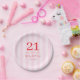 Prato De Papel Aniversário de 21 anos Vermelho Moderno Elegante R