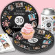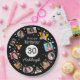 Adicione a personalidade da pessoa de aniversário à celebração com uma divertida colagem fotográfica de 12 fotos personalizadas em forma de confetti para um prato de papel de aniversário de 30 anos para servir todas as suas guloseimas de aniversário. Gráficos negros de confete em triângulos, ovais, retângulos, círculos e quadrados em preto e branco.