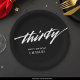 Prato De Papel Aniversário de 30 anos preto de script moderno