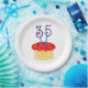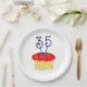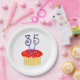 As placas de papel de 35 anos apresentam uma imagem de um cupcake com o número 35 sobre duas velas.