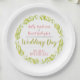 Uma ideia de presente adorável. Um prato de papel comemorativo para celebrar o casamento de um casal feliz, unidos em matrimônio.